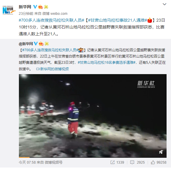 Re:新聞中國甘肅百公里越野賽下冰雹凍雨21名跑@gossiping,共有0則留言,0人參與討論,0推 0噓 0→, ※ 引述 《axzs1111 (★~板橋本環奈~★)》 之銘言: :
