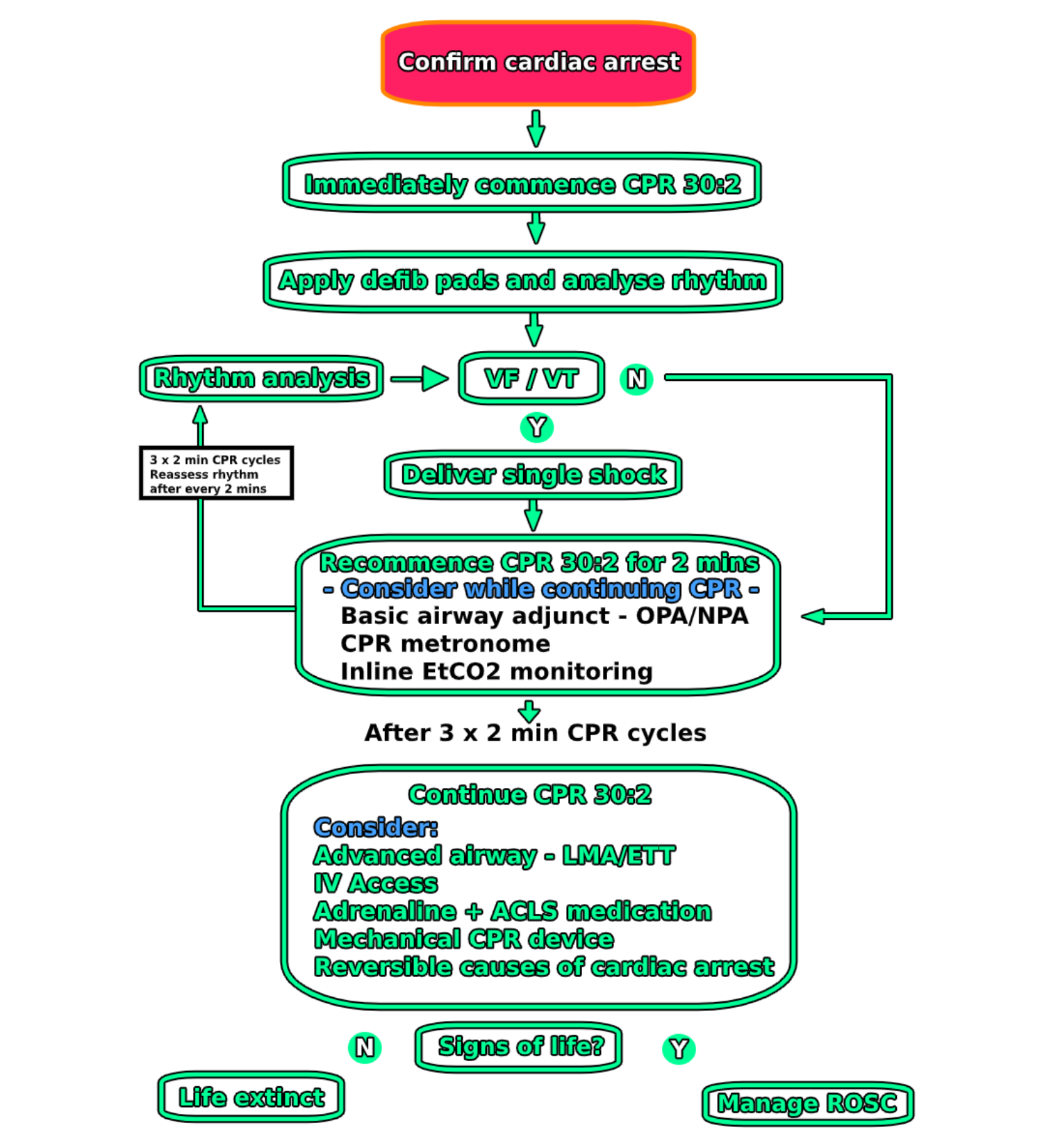 Cardiac Arrest Algorithm - Algorithm For The Resuscitation Of Traumatic Cardiac Arrest Patients In A Physician Staffed Helicopter Emergency Medical Service Critical Care Full Text : There are 4 rhythms that are seen with pulseless cardiac arrest.. The cardiac arrest occurred 18 min after acquiring electrocardiography. The cardiac arrest algorithm is the most critical algorithm of acls. For patients with cardiac arrest, survival rates and neurologic outcomes are poor, though early appropriate resuscitation, involving cardiopulmonary resuscitation (cpr), early defibrillation. Ccl = cardiac catheterization laboratory; Acls cardiac arrest pea and asystole algorithm.